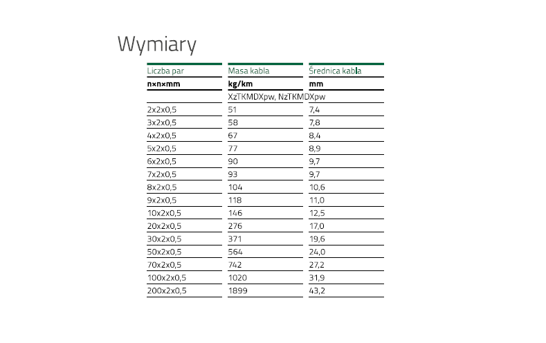 W przypadku pytań lub zainteresowania wymiarami kabla z tabeli prosimy o kontakt z jednym z naszych doradców.