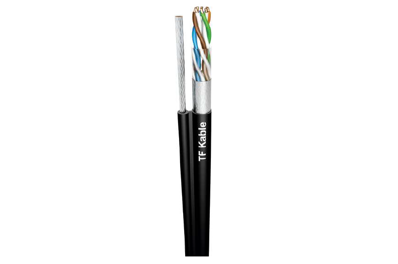 Kabel teleinformatyczny kategorii 5, o izolacji żył z polietylenu jednolitego lub piankowego z warstwą polietylenu jednolitego. Samonośny. OUTDOOR.